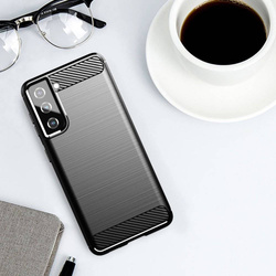 Carbon Case to wytrzymałe etui z eleganckimi wykończeniami imitującymi szczotkowany metal. Wykonany z wysokiej jakości materiałów (TPU) pokrowiec, który doskonale ochroni telefon przed upadkami, zarysowaniami czy brudem. Absorbuje wstrząsy, a specjalna struktura wewnątrz akcesorium pomaga rozłożyć siłę uderzenia. Do tego podwyższone krawędzie wokół ekranu i obiektywu aparatu oraz duże, responsywne przyciski.