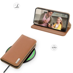 Etui Dux Ducis Hivo z klapką i blokadą RFID do Samsung Galaxy S24 - brązowe