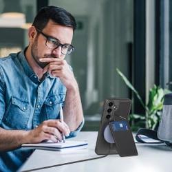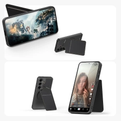 - Regulowana pionowa podstawka - dzięki wbudowanej podstawce, możesz wygodnie ustawić swój Samsung Galaxy S24 pionowo pod kątem do 135°. To idealne rozwiązanie, jeśli chcesz swobodnie prowadzić wideorozmowy lub korzystać z innych treści w pionowej orientacji.