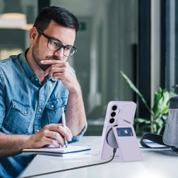 Dzięki kompatybilności z ładowaniem MagSafe, wystarczy odchylić podstawkę, a wąskie ładowarki, które mieszczą się pod klapką, zapewnią szybkie i bezprzewodowe ładowanie. To idealne rozwiązanie dla osób ceniących wygodę i prostotę, eliminując konieczność używania kabli. Teraz ładowanie telefonu staje się jeszcze łatwiejsze i bardziej efektywne.