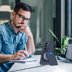 Etui zapewnia wygodne korzystanie z Samsung Galaxy S24+ w orientacji pionowej bez trzymania go w dłoni. Dzięki regulowanemu kątowi nachylenia do 135°, możesz swobodnie oglądać filmy i prowadzić wideorozmowy.