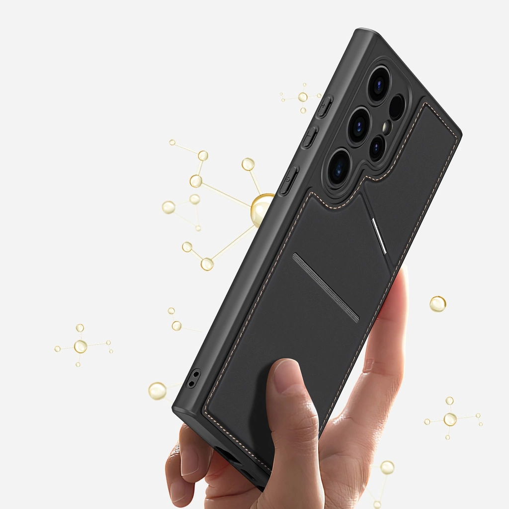 - Bezpieczne przechowywanie 2 kart z blokadą RFID - etui ma portfel, w którym możesz bezpiecznie przechowywać do dwóch kart. Dodatkowo, dzięki funkcji blokady RFID, twoje karty są chronione przed nieuprawnionym odczytem danych.