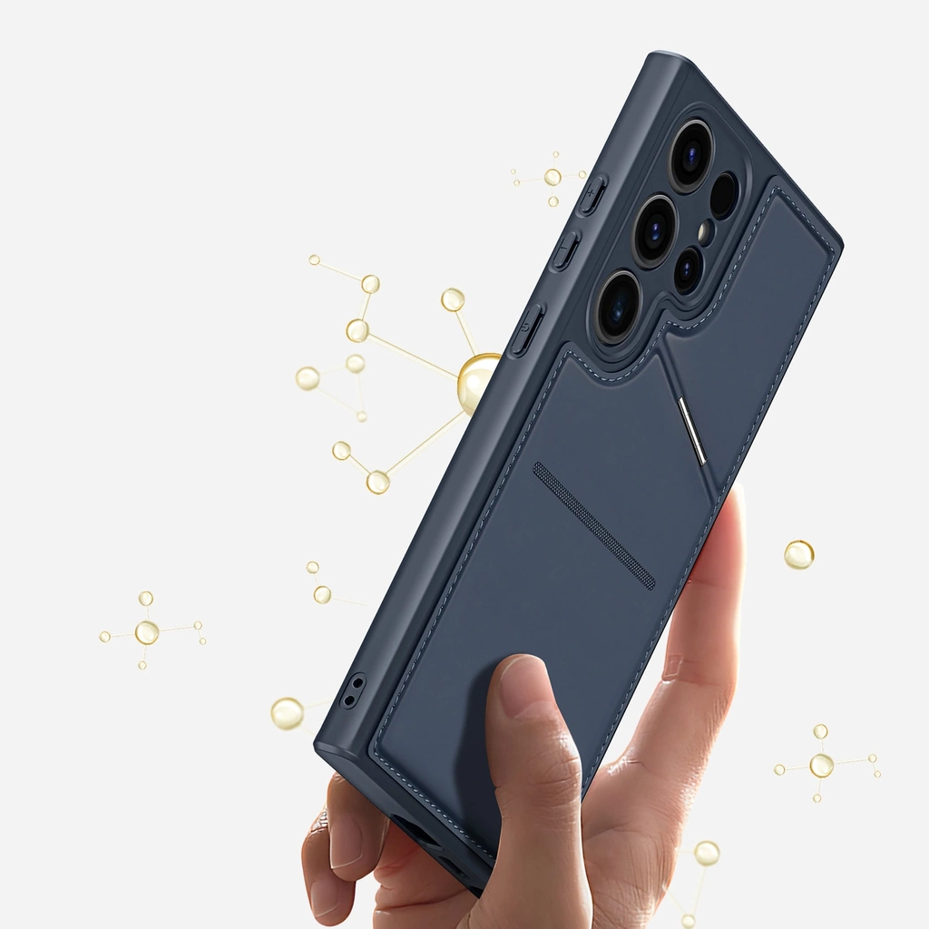 - Bezpieczne przechowywanie 2 kart z blokadą RFID - etui ma portfel, w którym możesz bezpiecznie przechowywać do dwóch kart. Dodatkowo, dzięki funkcji blokady RFID, twoje karty są chronione przed nieuprawnionym odczytem danych.
