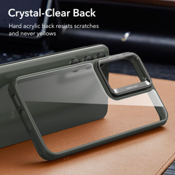 Case to połączenie sztywnych i twardych plecków wykonanych z PC i akrylu oraz miękkiej ramki z TPU wzmocnionej w narożnikach.
