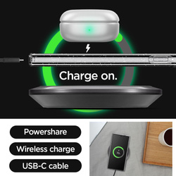 Obudowa wyposażona w nóżkę, umożliwia bezproblemowe oglądanie tego, co się dzieje na wyświetlaczu telefonu bez konieczności jego trzymania. Case jest idealnie dopasowany i nie ogranicza możliwości ładowania bezprzewodowego.