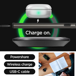 Obudowa wyposażona w nóżkę, umożliwia bezproblemowe oglądanie tego, co się dzieje na wyświetlaczu telefonu bez konieczności jego trzymania. Case jest idealnie dopasowany i nie ogranicza możliwości ładowania bezprzewodowego.