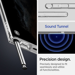 Case Ultra Hybrid wykonany z najwyższą precyzją, dzięki czemu po jego założeniu nie odczujesz zmniejszenia komfortu użytkowania smartfonu Samsung Galaxy S22 Ultra. Wysoka precyzja wykonania zapewnia świetne działanie przycisków bocznych. Nawet po założeniu tego etui dostęp do wszystkich złącz jest komfortowy. Obudowa Spigen Ultra Hybrid dzięki specjalnemu wyprofilowaniu zapewnia również doskonałą ochronę kamery. W etui użyto opatentowaną technologię Air Cushion, dzięki której Twój telefon Samsung Galaxy S22 Ultra będzie zawsze bezpieczny. Case spełnia wojskową normę MIL-STD 810G-516.6. Kupując etui Spigen Ultra Hybrid nie będziesz już się musiał obawiać przy każdym upadku telefonu. Pokrowiec idealnie współgra z Samsung Galaxy S22 Ultra, a dzięki smukłej budowie typu plecki telefon pozostaje poręczny nawet po założeniu etui.