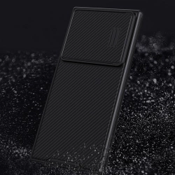 Smukłe i eleganckie etui Nillkin CamShield S Case, które zabezpiecza urządzenie przed uszkodzeniami, a dodatkowo posiada przesuwaną osłonę na tylny aparat. Pokrowiec jest dopasowany do Samsung Galaxy S23 Ultra, doskonale chroni telefon przed zniszczeniami wskutek upadków lub zarysowań (na przykład przez noszone w kieszeni klucze). Pokrowiec posiada przesuwaną osłonę na tylny aparat. Dzięki niej szkło kamery jest chronione przed porysowaniem. Jest do też dodatkowy plus dla osób ceniących prywatność i bezpieczeństwo swoich danych. Zakryta kamera uniemożliwia dostęp do nagrywania obrazu w przypadku kiedy ktoś uzyska zdalny dostęp do telefonu i włączy podgląd z głównej kamery. Podniesione krawędzie dookoła ekranu zabezpieczają go od zarysowania kiedy ten leży na płaskiej powierzchni.