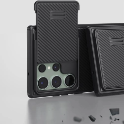 Pancerne etui Samsung Galaxy S23 Ultra z serii Nillkin CamShield S Magnetic Case z osłoną na aparat w kolorze czarnym