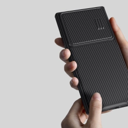Smukłe i eleganckie, magnetyczne etui Nillkin CamShield S Magnetic Case, które zabezpiecza urządzenie przed uszkodzeniami, a dodatkowo posiada przesuwaną osłonę na tylny aparat. Pokrowiec jest dopasowany do Samsung Galaxy S23 Ultra, doskonale chroni telefon przed zniszczeniami wskutek upadków lub zarysowań (na przykład przez noszone w kieszeni klucze). Pokrowiec posiada przesuwaną osłonę na tylny aparat. Dzięki niej szkło kamery jest chronione przed porysowaniem. Jest do też dodatkowy plus dla osób ceniących prywatność i bezpieczeństwo swoich danych. Zakryta kamera uniemożliwia dostęp do nagrywania obrazu w przypadku kiedy ktoś uzyska zdalny dostęp do telefonu i włączy podgląd z głównej kamery. Podniesione krawędzie dookoła ekranu zabezpieczają go od zarysowania kiedy ten leży na płaskiej powierzchni.