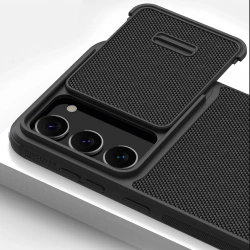Etui Nillkin Textured S Case powstało z wysokiej jakości materiałów. Nietypowy tylny panel pokrowca ma przyjemną w dotyku powłokę z włókna nylonowego. Nie tylko zapewnia ona ciekawe wykończenie i ciekawy design, lecz przy tym jest wygodna i zapobiega wyślizgnięciu urządzenia z dłoni. Pokrowiec jest dopasowany do Samsung Galaxy S23, doskonale chroni go przed zniszczeniami wskutek upadków lub zarysowań (na przykład przez noszone w kieszeni klucze). Pokrowiec posiada przesuwaną osłonę na tylny aparat. Dzięki niej szkło kamery jest chronione przed porysowaniem. Jest do też dodatkowy plus dla osób ceniących prywatność i bezpieczeństwo swoich danych. Zakryta kamera uniemożliwia dostęp do nagrywania obrazu w przypadku kiedy ktoś uzyska zdalny dostęp do telefonu i włączy podgląd z głównej kamery. Podniesione krawędzie dookoła ekranu zabezpieczają go od zarysowania kiedy ten leży na płaskiej powierzchni.