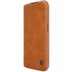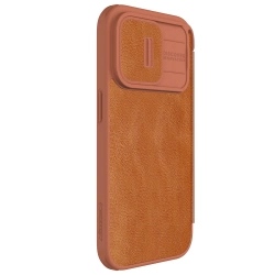 Skórzane etui Nillkin Qin Pro Leather z klapką i osłoną aparatu do telefonu iPhone 15 Pro w kolorze brązowym
