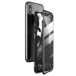 - Magnetyczna konstrukcja + szkło hartowane wbudowane w pokrowiec – etui składa się z dwóch metalowych ramek połączonych ze sobą silnymi magnesami oraz szkła hartowanego, które znajduje się na przedniej i tylnej części pokrowca.