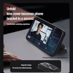 Osłona obiektywu łatwo przekształca się w wygodną podstawkę, umożliwia więc komfortowe oglądanie filmów czy przeglądanie zdjęć bez konieczności trzymania telefonu w ręce.