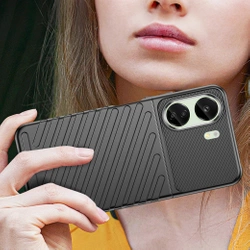 Etui z serii Thunder Case jest wykonane z termoplastycznego i wytrzymałego tworzywa, które zapewnia mu dobrą elastyczność. Pokrowiec jest dopasowany do Xiaomi Redmi 13c, doskonale chroni telefon przed zniszczeniami wskutek upadków lub zarysowań (na przykład przez noszone w kieszeni klucze). Podniesione krawędzie dookoła ekranu i tylnego aparatu zabezpieczają telefon od zarysowania tych elementów kiedy ten leży na płaskiej powierzchni. Posiada responsywne przyciski i wycięcia na porty. Idealny dla osób, które cenią sobie styl, jakość i chcą zadbać o swoje urządzenie.
