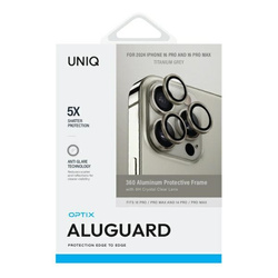 Szkło Hartowane UNIQ Optix Aluminium Camera Lens Protector iPhone 16 Pro 6.3" / 16 Pro Max 6.9" titanium grey szkło na obiektyw aparatu z aplikatorem