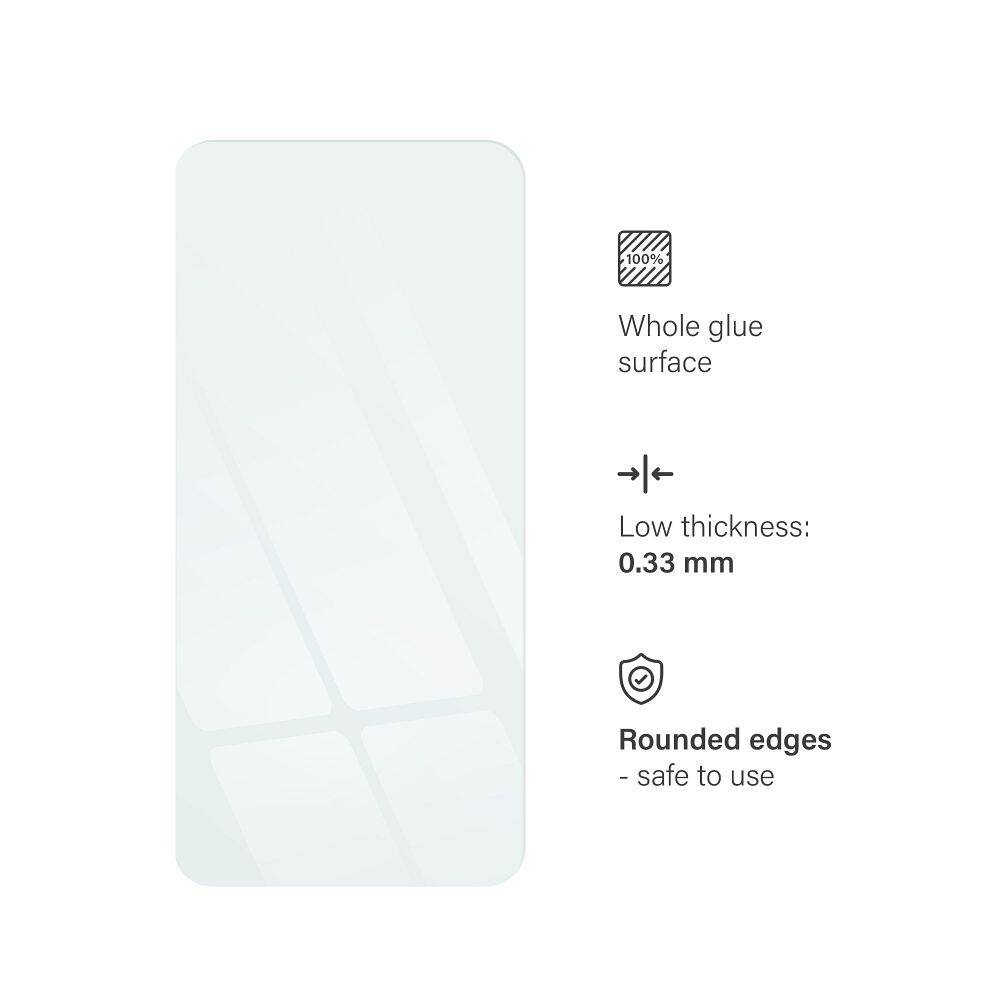 Szkło doskonale chroni ekran urządzenia przed pęknięciami, zarysowaniami i uszkodzeniami. Oleofobowa powłoka zapewnia przejrzystość ekranu i odporność na odciski palców oraz zabrudzenia.