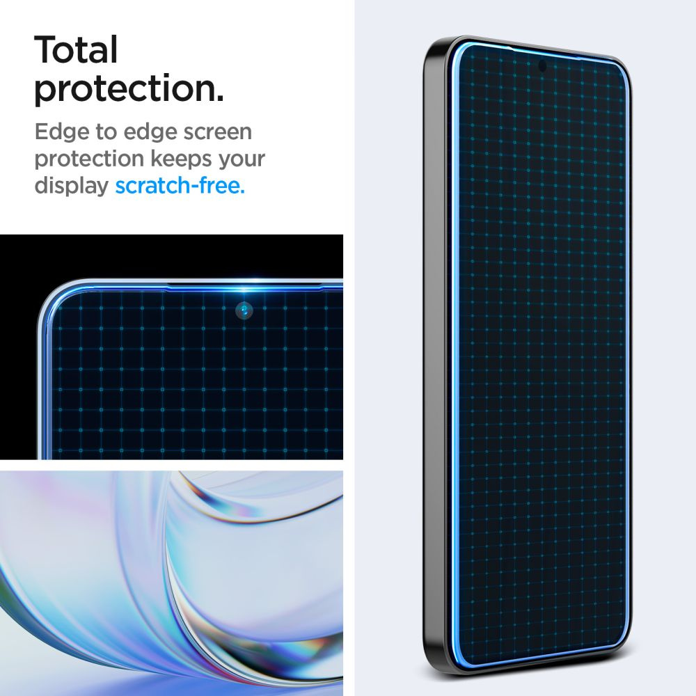 Szkło hartowane z serii "EZ Fit"od firmy Spigen zostało zabezpieczone idealnie dociętą do przedniej części telefonu ramką montażową, dzięki której w perfekcyjny sposób wypozycjonujesz je na ekranie. Producent uprościł sposób montażu do tego stopnia, że jest on w pełni intuicyjny dla każdego użytkownika.