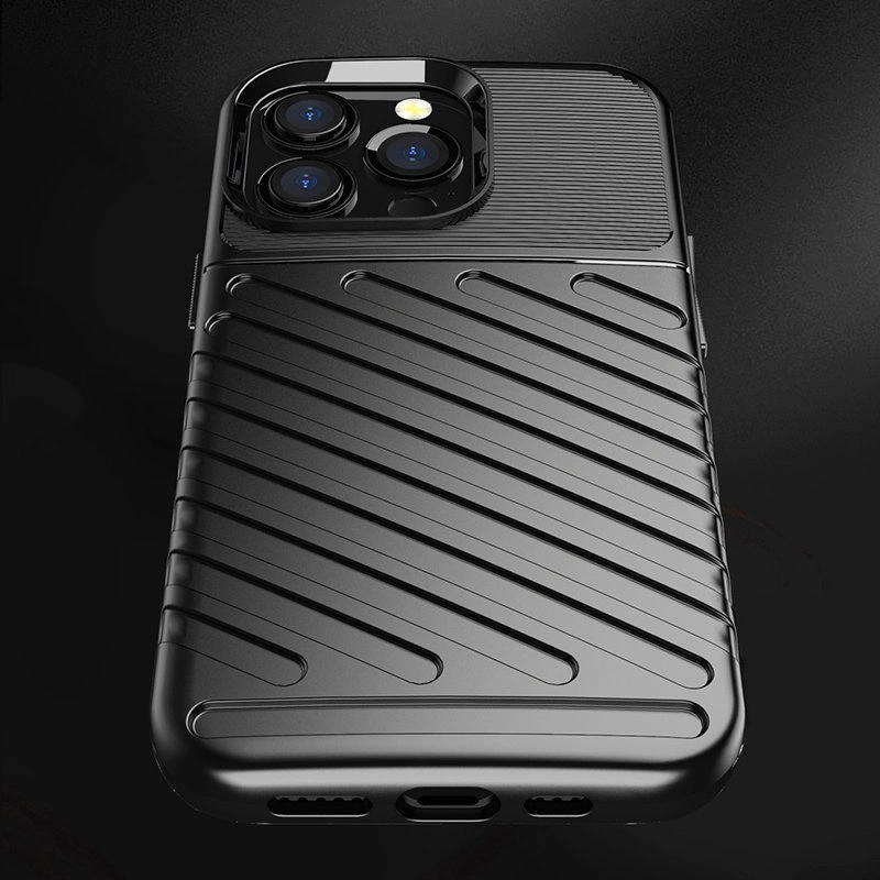 Thunder Case to wytrzymałe etui z eleganckimi wykończeniami. Wykonany z wysokiej jakości materiałów (TPU) pokrowiec, który doskonale ochroni telefon przed upadkami, zarysowaniami czy brudem. Absorbuje wstrząsy, a specjalna struktura wewnątrz akcesorium pomaga rozłożyć siłę uderzenia. Do tego podwyższone krawędzie wokół ekranu i obiektywu aparatu oraz duże, responsywne przyciski.