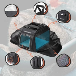 Torba Rockbros 30140028001 oferuje aż pięć sposobów przenoszenia: montaż na rowerze, noszenie na plecach, na ramieniu i przymocowanie do walizki. To idealne rozwiązanie dla aktywnych właścicieli zwierząt, którzy często zmieniają sposób przemieszczania się.