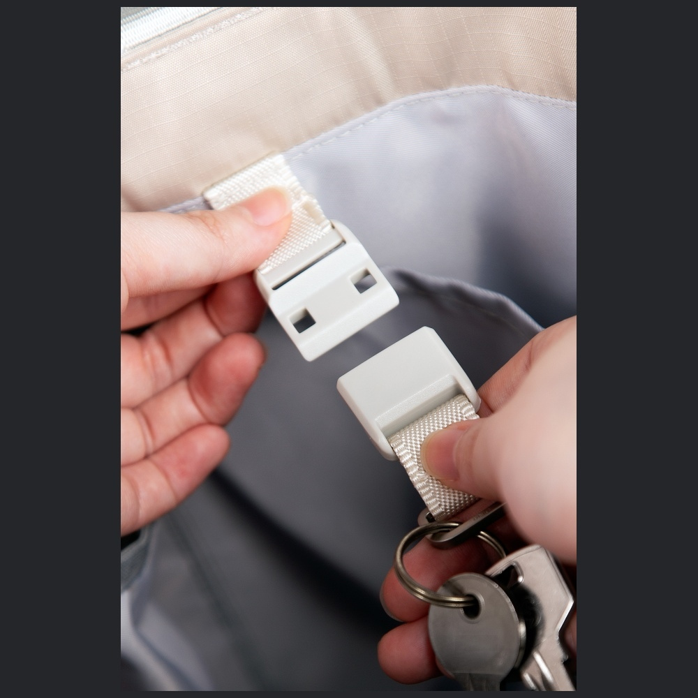 Zintegrowana magnetyczna smycz pozwala przypiąć klucze czy etui AirPods do torby, aby zawsze mieć je pod ręką.