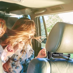 - Pasuje do większości samochodów i urządzeń. Jest kompatybilny z zagłówkami o szerokości 140-180 mm oraz telefonami i tabletami o rozmiarze 4.7-12.9 cala.