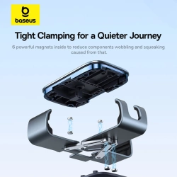 We wnętrzu uchwytu znajduje się 6 mocnych magnesów. Dzięki nim wewnętrzne komponenty uchwytu nie przesuwają się i nie hałasują na nierównościach. Baseus Metal Age 3 eliminuje więc wszelkie dźwięki, które mogłyby zakłócić spokój podróży.