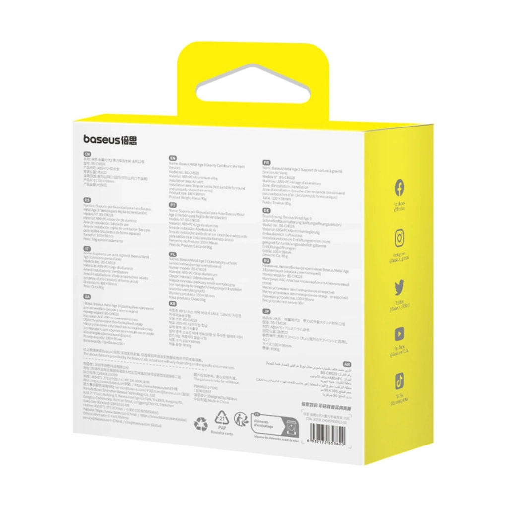 Uchwyt Baseus Metal Age 3 BS-CM028 grawitacyjny do samochodu na kratkę wentylacji - szary