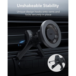 Posiada nóżki, które działają jako wspornik, dzięki czemu uchwyt nie opada sam z siebie po instalacji w dowolnej kratce nawiewu, a cała konstrukcja jest przy tym dodatkowo stabilniejsza.
