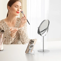 - Kompatybilność: smartfony z MagSafe i etui magnetycznymi; pozostałe urządzenia po zastosowaniu dołączonego pierścienia metalowego