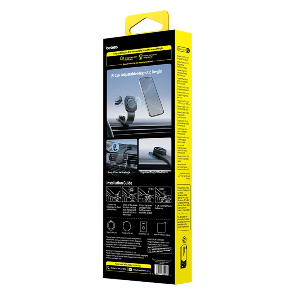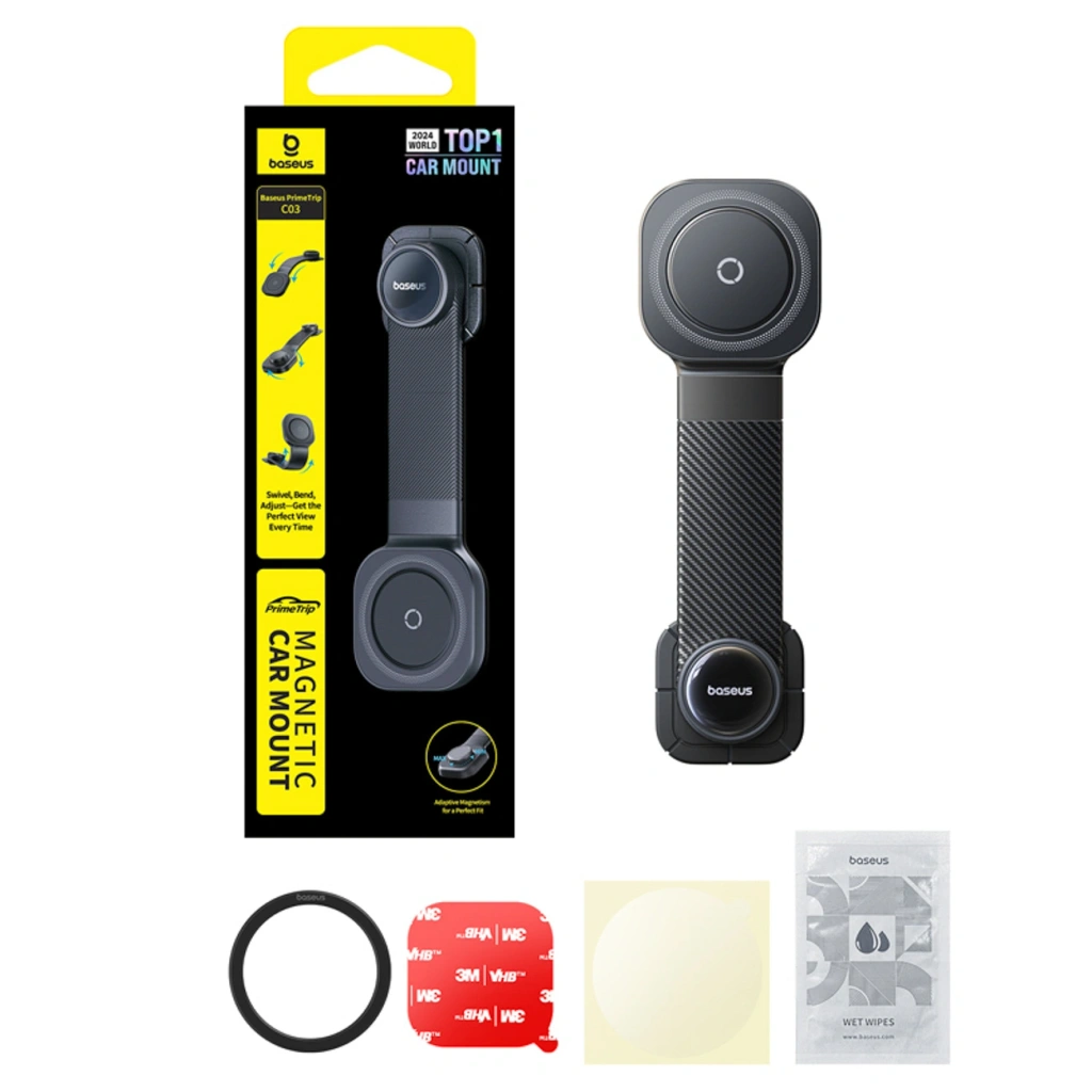 Baseus PrimeTrip C03 to magnetyczny uchwyt samochodowy zaprojektowany z myślą o stabilnym i wygodnym korzystaniu ze smartfona podczas jazdy. Silne mocowanie magnetyczne zapewnia pewne utrzymanie telefonu nawet na nierównych nawierzchniach i podczas gwałtownych manewrów. Regulowana konstrukcja pozwala łatwo ustawić ekran pod odpowiednim kątem, bez ograniczania widoczności na drogę. Uchwyt montowany jest na desce rozdzielczej za pomocą trwałej warstwy klejącej, co umożliwia szybki montaż bez użycia narzędzi. To praktyczne rozwiązanie dla kierowców, którzy cenią porządek, bezpieczeństwo i estetykę wnętrza auta.