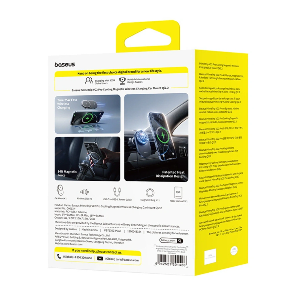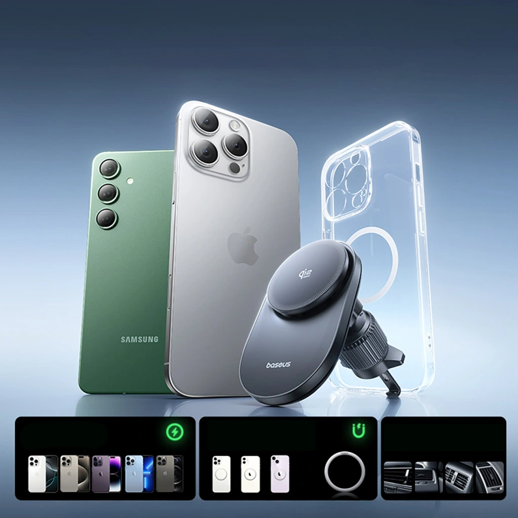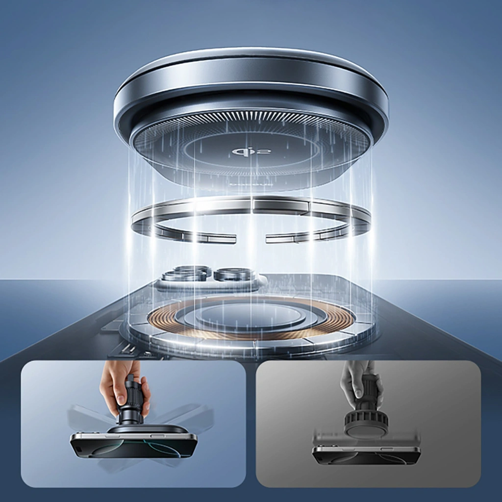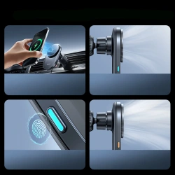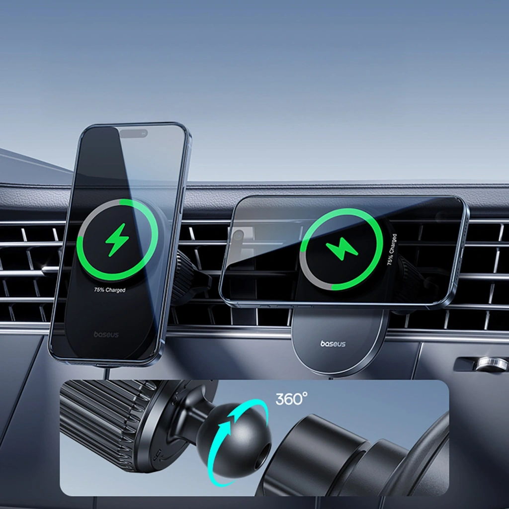 Baseus PrimeTrip VC2 Pro to zaawansowany uchwyt magnetyczny z bezprzewodowym ładowaniem Qi2.2, zaprojektowany do bezpiecznego i wydajnego użytkowania w samochodzie. Obsługuje szybkie ładowanie bezprzewodowe o mocy do 25 W i wykorzystuje aktywne chłodzenie z wbudowanym wentylatorem, aby utrzymać stabilną wydajność podczas jazdy. Mocne magnesy zapewniają precyzyjne pozycjonowanie telefonu i pewne trzymanie na kratce nawiewu. Smukła konstrukcja oraz regulowana głowica kulowa 360° pozwalają wygodnie ustawić telefon w pionie lub poziomie. To rozwiązanie dla kierowców, którzy oczekują stabilności, chłodzenia i szybkiego ładowania w jednym urządzeniu.