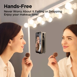 - Pozwala korzystać z telefonu bez użycia rąk. Idealne rozwiązanie np. do nakładania makijażu czy tworzenia treści wideo.