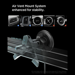 Za pewne i bezpieczne mocowanie odpowiadają magnesy N52, charakteryzujące się wyjątkowo wysoką siłą przyciągania. Uchwyt utrzymuje telefon stabilnie nawet na wyboistych drogach, zakrętach czy gwałtownych hamowaniach, zapewniając perfekcyjnie dopasowane połączenie MagSafe w każdych warunkach. Zintegrowana technologia Airboost automatycznie dostosowuje moc ładowania do potrzeb urządzenia, optymalizując szybkość i bezpieczeństwo procesu. Uchwyt obsługuje ładowanie z mocą do 15W w zależności od możliwości telefonu, zapewniając maksymalną wydajność bez ryzyka przegrzania.