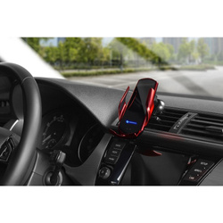 Automatyczny uchwyt samochodowy z ładowaniem bezprzewodowym i czujnikiem podczerwieni. Automatycznie otwiera i zamyka ramiona. Wspiera ładowanie indukcyjne. Dzięki wbudowanemu czujnikowi podczerwieni, uchwyt automatycznie rozpoznaje urządzenie, gdy znajdzie się ono blisko akcesorium (5-20 cm), a następnie automatycznie otwiera i zamyka ramiona, gdy telefon znajdzie się w środku. Uchwyt wspiera szybkie ładowanie bezprzewodowe. W przypadku urządzeń, które nie wspierają technologii ładowania indukcyjnego, użyj załączonych do zestawu magnetycznych końcówek. Produkt posiada wbudowany system zabezpieczeń: przed przepięciem, przegrzaniem, polem magnetycznym, zwarciem. Montowany do kratki wlotu lub przedniej szyby. Specyfikacja: Identyfikator modelu: HS1 Materiał: PC, ABS Wejście: 5V/2A, 9V/1.67A Wyjście: 5V/1,5A, 9V/1,2A Moc: 15W, 10W, 7.5W, 5W w zależności od modelu telefonu Częstotliwość ładowania: ?80% 110K-205K Hz Efektywność ładowania: >72% Odległość ładowania: < 10 mm Wsparcie: ładowanie bezprzewodowe Qi Rozstaw ramion: 4.7”-7.2” Wymiary: 130 * 65 * 24 mm Długość kabla: 100 cm Waga: 97 g Miejsce montażu: kratka wlotu, przednia szyba