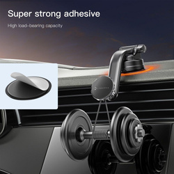 Uchwyt jest uniwersalny i pasuje do wielu różnych powierzchni – zestaw składa się z części, które umożliwiają zamocowanie uchwytu zarówno na szybie lub desce rozdzielczej, jak i na kratce wentylacyjnej. Wybór miejsca zgodnego z własnymi preferencjami zapewnia spokojną i komfortową podróż.