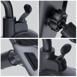 Uchwyt Forcell Bracket zapewnia wygodne i bezpieczne korzystanie z nawigacji lub smartfona podczas jazdy. 360 stopniowa regulacja umożliwia wygodne ustawienie urządzenia w pionie lub poziomie. Elastyczne ramię umożliwia dostosowanie pozycji telefonu do swoich potrzeb. Uchwyt wykonany jest z wysokiej jakości tworzywa, które gwarantuje trwałość i komfort użytkowania. Zaciski powleczone są tworzywem, które chroni boki smartfona przed zarysowaniami. Uchwyt wyposażony jest w dwa przyciski: zwalniający klapy zaciskowe oraz ssawkę. Kolor: Czarny Mocowanie: Przyssawka Rozstaw ramion: do 95 mm Długość ramienia: max. 170 mm Obrót na ramieniu : 270 stopni