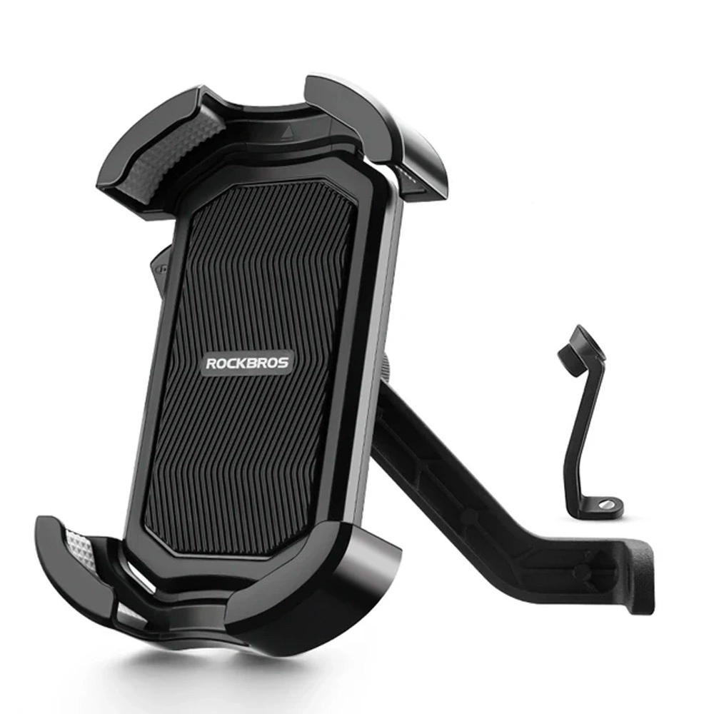 Uchwyt na telefon Rockbros 25210032005 do motocyklu, z wygodną blokadą, na lusterko - czarny