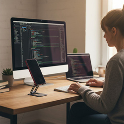 Forcell F-Grip Fold Stand 1 to składany i ultralekki uchwyt biurkowy do smartfonów oraz mniejszych tabletów, wykonany z trwałego aluminium. Kompaktowa forma, regulacja kąta nachylenia oraz solidne wykonanie czynią z niego funkcjonalne i uniwersalne akcesorium do użytku biurowego, domowego lub mobilnego.