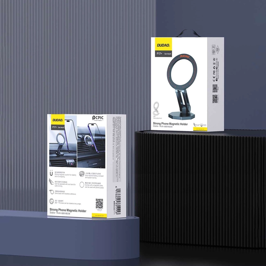 - Siła magnetyczna dla stabilności: Z Dudao F17+ Twój telefon będzie trzymał się mocno nawet podczas nierówności, dzięki potężnej przyciągającej sile magnetycznej.