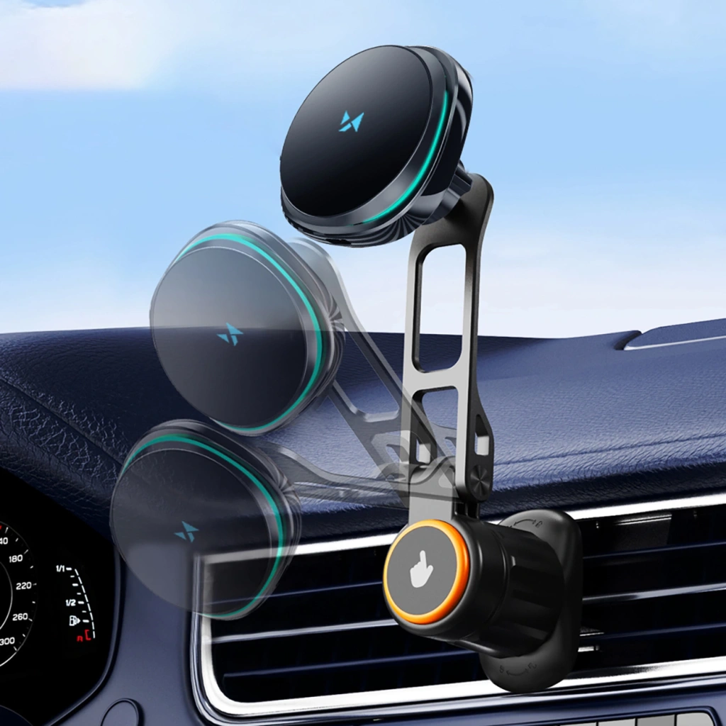 Wozinsky WCT5-6S2Y to wszechstronny uchwyt samochodowy z wbudowaną ładowarką indukcyjną o mocy do 15W, który łączy nowoczesną technologię z funkcjonalnym designem. Dzięki 20 magnesom N52 mocowanie telefonu jest stabilne i bezpieczne nawet na nierównych drogach, a dołączony pierścień magnetyczny pozwala na korzystanie z uchwytu również z innymi telefonami z ładowaniem Qi – nie tylko iPhone'ami od serii 12 wzwyż. Wbudowany wentylator aktywnie chłodzi urządzenie podczas ładowania, a regulowane ramię z obrotem 360° i kątem nachylenia do 180° umożliwia idealne dopasowanie pozycji telefonu. Uchwyt montowany jest na kratce nawiewu i pasuje do większości typów kratek – zarówno poziomych, jak i kratkowych. To idealne rozwiązanie dla kierowców ceniących komfort, szybkość i porządek w aucie.