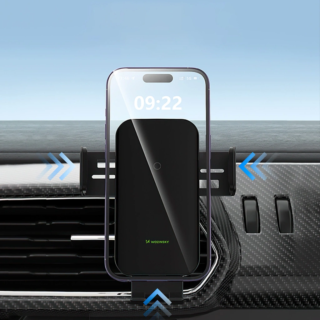 • Uchwyt samochodowy Wozinsky WEDZ-3Y8S zaciskowy z ładowarką indukcyjną 15W do telefonu na kratkę nawiewu - czarny
