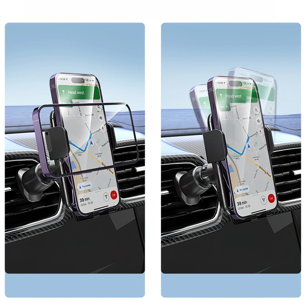 • Automatyczny mechanizm zaciskowy: Wystarczy jedno kliknięcie, aby ramiona uchwytu otworzyły się i automatycznie dopasowały do smartfona.