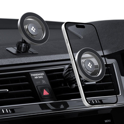 Wbudowane magnesy klasy N52 zapewniają wyjątkowo mocny chwyt, który utrzymuje smartfon stabilnie nawet podczas nagłych manewrów czy jazdy po nierównościach. Uchwyt oferuje uniwersalność dzięki dołączonemu metalowemu pierścieniowi, który pozwala na korzystanie z niego również z telefonami nieobsługującymi MagSafe. Konstrukcja z możliwością obrotu o 360 stopni umożliwia dowolne ustawienie kąta widzenia, zapewniając maksymalny komfort i bezpieczeństwo podczas jazdy.