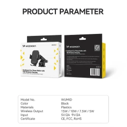 Uchwyt samochodowy Wozinsky WUMID z ładowarką indukcyjną 15W na deskę rozdzielczą - czarny