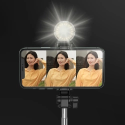 Z selfie stickiem WH1YXS Twoje zdjęcia i nagrania wideo nabiorą zupełnie nowego wymiaru. To urządzenie oferuje nie tylko teleskopową długość do 103 cm - ma także w zestawie okrągłą lampę z 20 diodami LED, która idealnie oświetla każdą scenę. Dzięki możliwości obrotu głowicy o 360 stopni i kompatybilności z wieloma markami telefonów selfie stick WH1YXS sprawdzi się w każdej sytuacji. Jest lekki, wytrzymały i wyposażony w antypoślizgową rączkę oraz zdalne sterowanie Bluetooth.