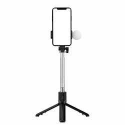 Selfie stick WH1YXS teleskopowy tripod 1m z okrągłą lampą i uchwytem na telefon - czarny