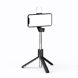 Teleskopowy selfie stick WR1YXS / tripod o wysokości do 71 cm z okrągłą lampą - czarny