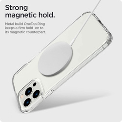 Cienki i lekki metalowy pierścień Spigen OneTap pozwala przekształcić każde etui lub telefon w system mocowania i bezprzewodowego ładowania MagSafe.