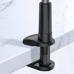 Uchwyt jest bardzo łatwy w montażu i demontażu. Wystarczy jednym ruchem zakręcić lub odkręcić mocowanie. Podstawę uchwytu w prosty sposób montuje się do biurka, stołu lub półki za pomocą solidnego klipsu.